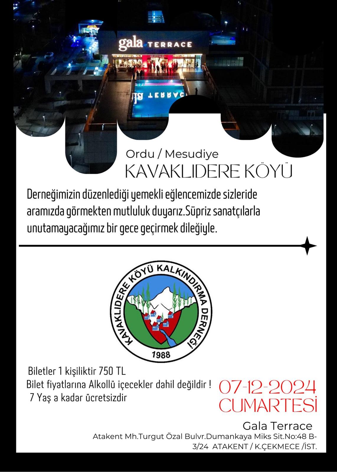 Bunun bir yolu da derneğimizin dayanışma ve eğlence gecesidir" diyerek tüm Lavaklıdereliler'i 7 Aralık'ta Hüseyin Arıcan'ın sahibi olduğu Ataköy Gala Terrace'de yapılacak dayanışma gecesine davet etti.