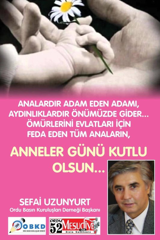 Başkan Uzunyurt, yaptığı açıklamaya devam ederek "saygıdeğer OBKD Yönetim Kurulu Üyelerinin annleri, Ordu Mesudiye Gazetesi'nde birlikte görev yaptığımız çalışma arkadaşlarımızın anneleri, Basın Mensubu arkadaşlarımın Anneleri, Abonelerimiz ve bütün annelerin, "Anneler Gününü" kutlar; en kalbi sevgi ve hürmetlerimizi sunarız” diyerek,