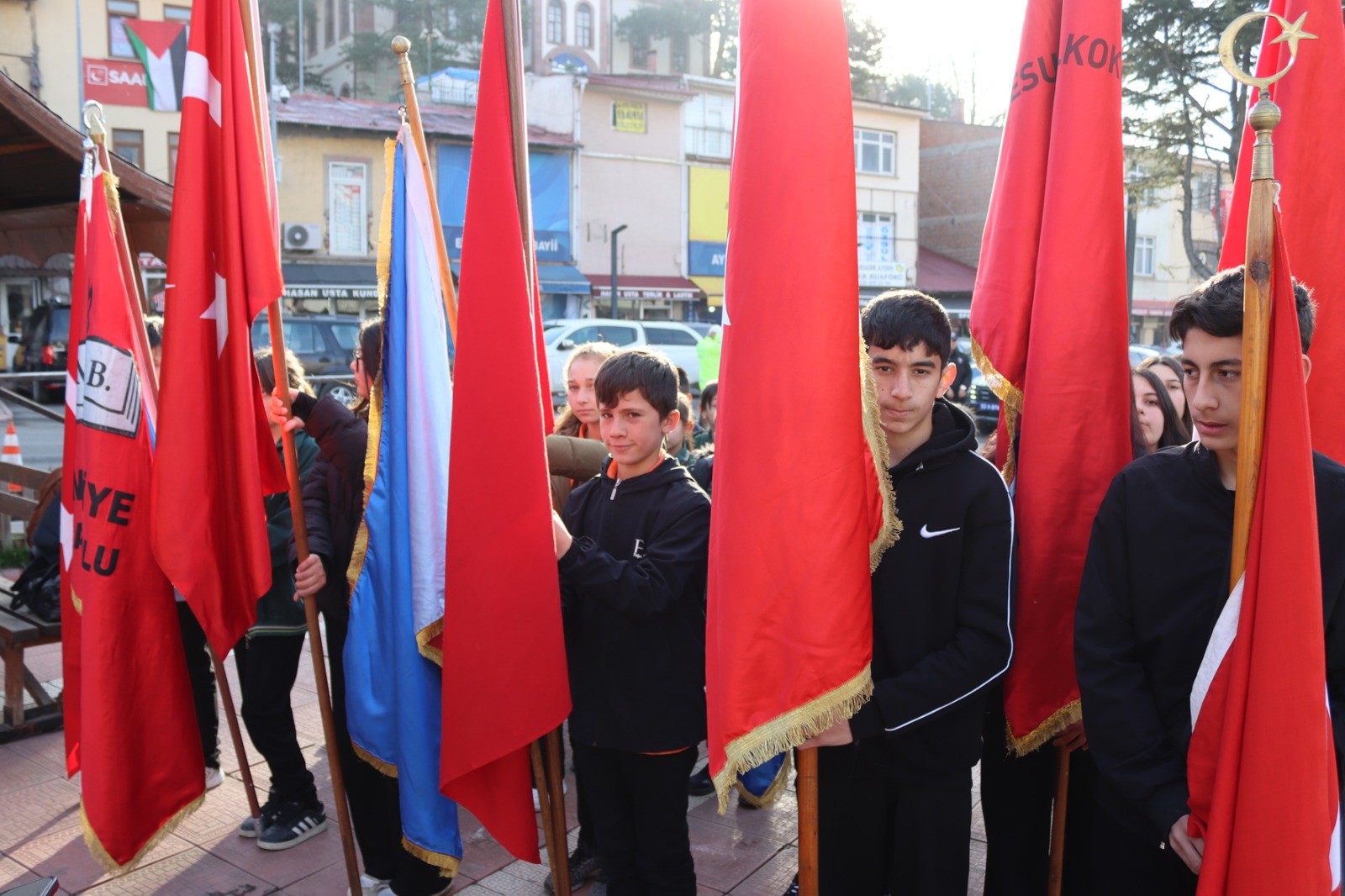 Cumhuriyet Meydanı’nda Atatürk anıtına çelenk sunma törenine Mesudiye İlçe Mili Eğitim Müdürü Emine Turan Öztürk, öğretmenler, ögrenciler, sivil toplum örgütleri temsilcileri katılarak, çelenk koyup, saygı duruşunda bulundular.