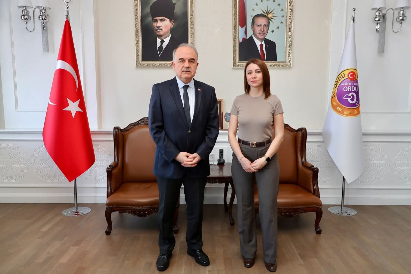 Vali Muammer Erol, Ordu'nun ilk kadın pilotu Esra Öcal Ethan ve Mesudiye Belediye Başkanı Cengiz Koçyiğit'in ziyaretlerinden duyduğu memnuniyeti belirterek, teşekkür etti.